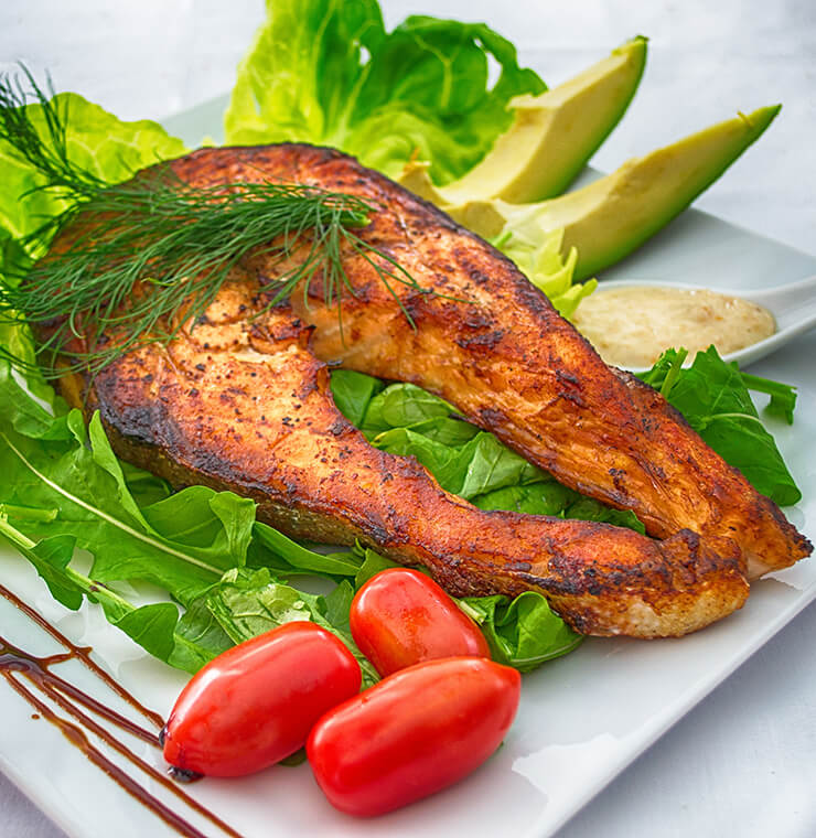 Salmón premium glaseado con miel, mostaza Dijon y limón